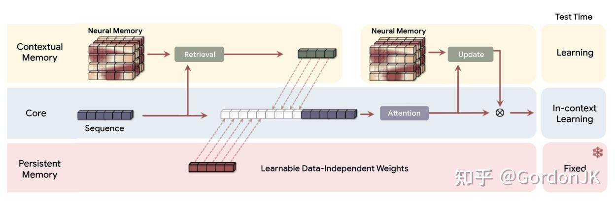 - 遗忘(权重衰减):为了在处理极长序列时管理有限的内存容量,Titan 模型采用了一种自适应权重衰减机制。该机制如同一个遗忘门,允许模型丢弃不再需要的信息。