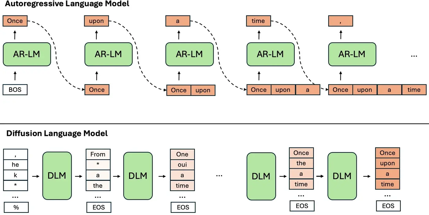 - 扩散语言模型(DLM)不讲究“先放什么”,它把原材料全下锅,通过迭代调整,逐渐生成通顺句子。