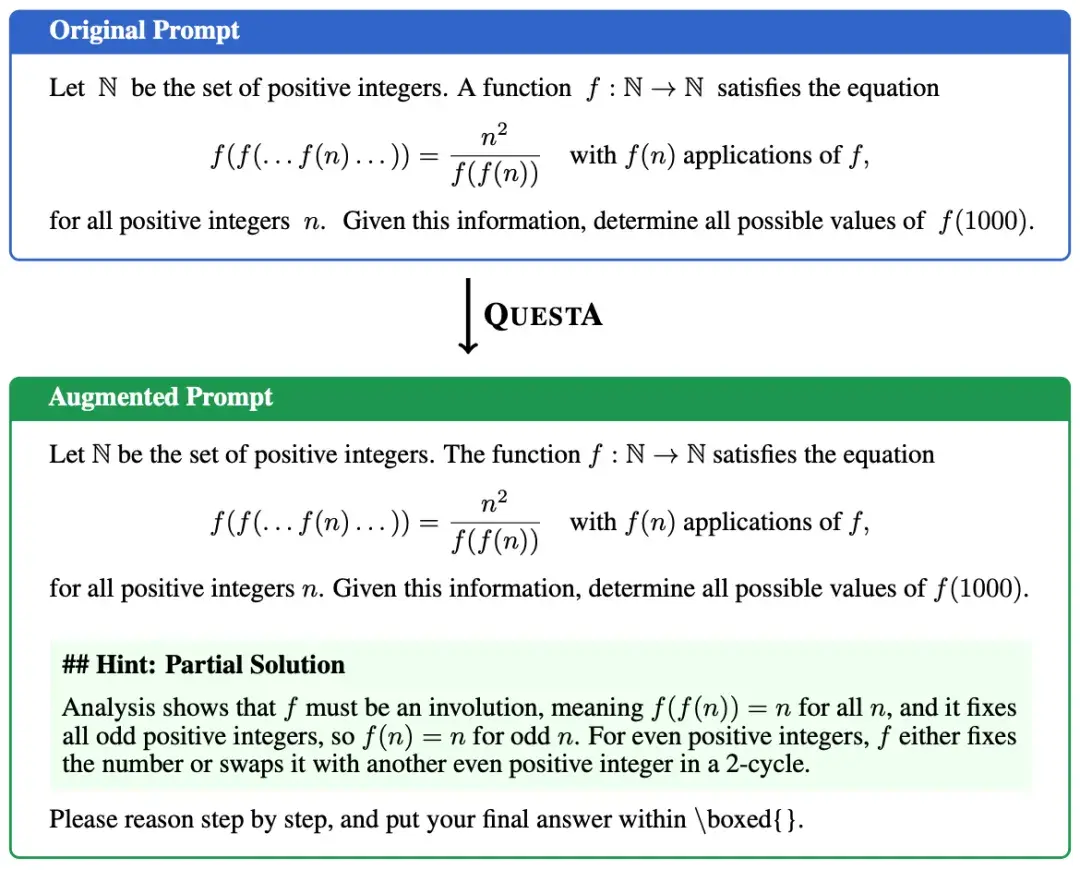 QuestA(问题增强): 训练过程中注入部分解题提示,QuestA 实现两项重大成果