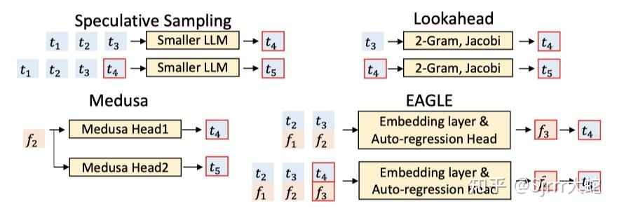 - 示例:EAGLE-3,当前最优方案, 2025年被NIPS接受,已集成到vLLM和SGLang等所有主流框架